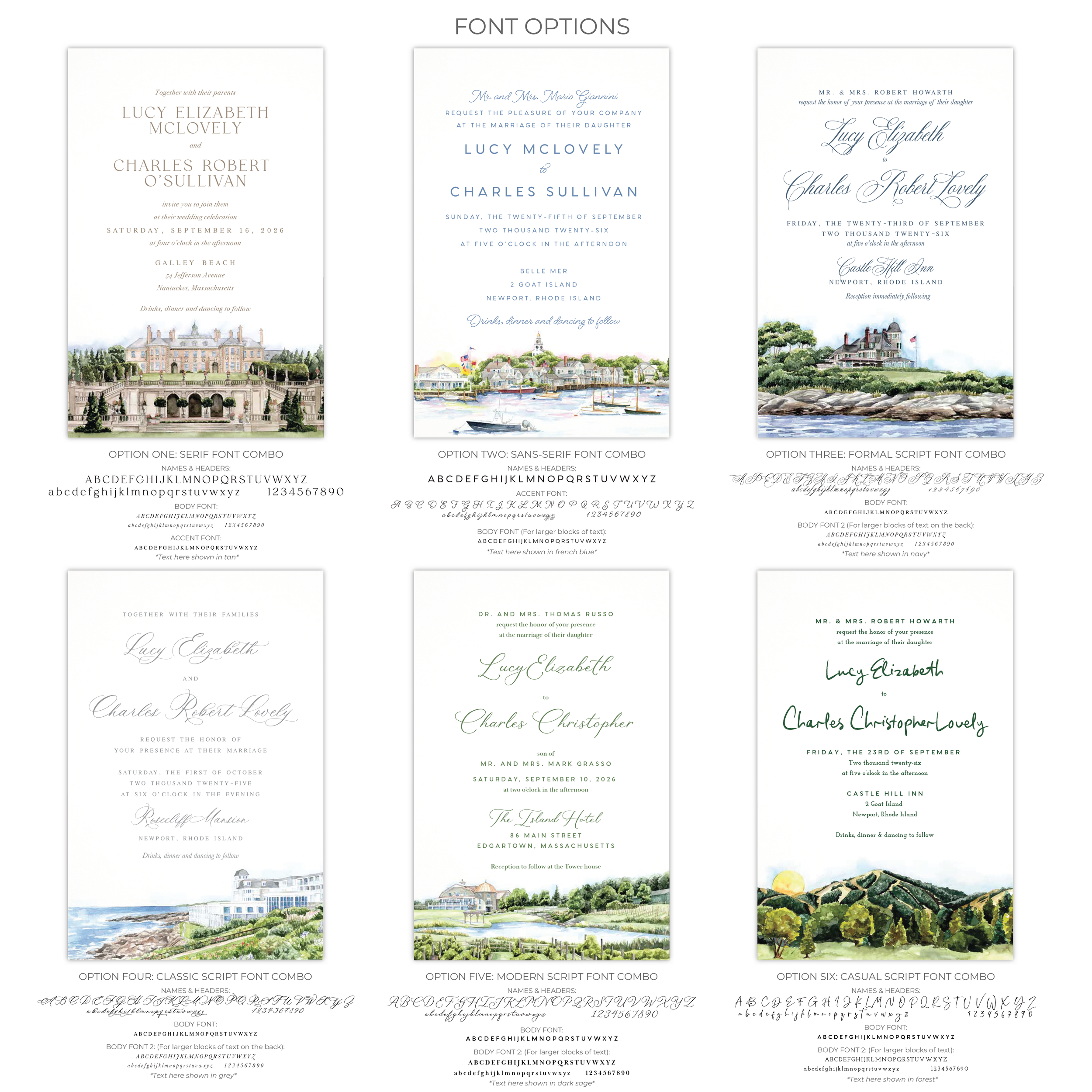 WIBL’s Ready-to-Order products are, you guessed it, ready to order today. We offer Ready-to-Order Venue Save the Dates and Wedding Invitations which feature watercolors of wedding venues we have already painted. Venues are currently limited to the those listed and shown below, click on the state or country to focus on venues in that area. If your venue or state is not currently listed, be sure to check back, as we will continually add to the Ready to Order collection. Scroll to the bottom of this page for a list of the venues currently available.