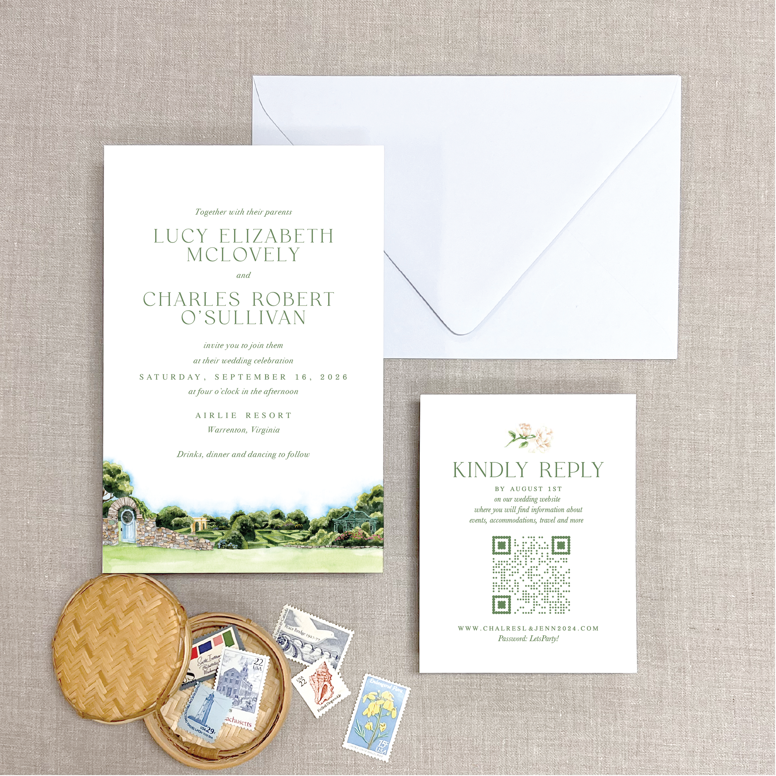 WIBL’s Ready-to-Order products are, you guessed it, ready to order today. We offer Ready-to-Order Venue Save the Dates and Wedding Invitations which feature watercolors of wedding venues we have already painted. Venues are currently limited to the those listed and shown below, click on the state or country to focus on venues in that area. If your venue or state is not currently listed, be sure to check back, as we will continually add to the Ready to Order collection. Scroll to the bottom of this page for a list of the venues currently available.